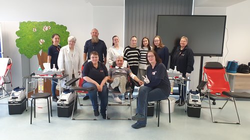 Insgesamt kamen 56 Spenderinnen und Spender, davon 15 Erstspender, nicht nur vom Care Campus, sondern auch aus dem Diakonie-Krankenhaus, dem Mutterhaus, aus Elbingerode, Rübeland, Wernigerode usw. Die Werbetrommel war gut gerührt.